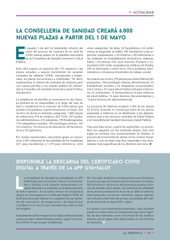 UCH), del Instituto de Biomedi- 6.000 nuevas plazas en la plantilla estructural gencias hospitalarias; y 20 médicos y 45 enfermeras a