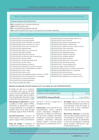 taron las bases de los preparados su entrega directa a los enfermos a en oficina de farmacia o servicio FN/2003/PO/010 Alcohol boricado (a saturación) FN/2003/PO/032 Vaselina salicílica