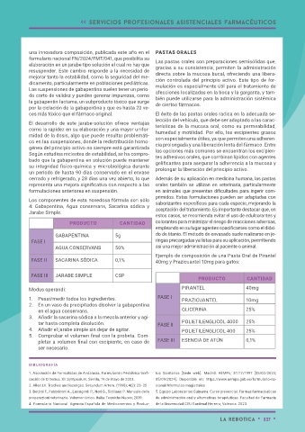 a formulación magistral, especialmente en la o sedantes, gracias a su capacidad para ser absorbidas ces más tóxico que el fármaco original. El éxito de las pastas orales radica en la adecuada se-