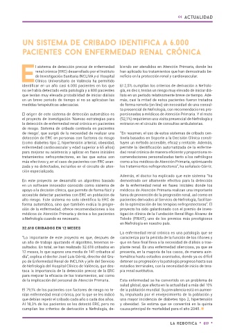 zada y no detectados, incluirlos en el circuito de aten- los tratamientos nefroprotectores”, ha señalado Górriz.