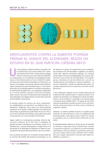 taria La Fe de Valencia (IIS-La Fe) y el Center for Alzhei- gía tau. Asimismo, el uso de metformina —uno de los cipación de Andrés Gené Sampedro, del Colegio de