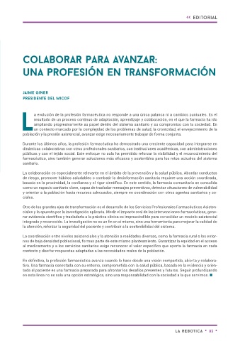 FARMACÉUTICA ampliando progresivamente su papel dentro del sistema sanitario y su compromiso con la sociedad. En