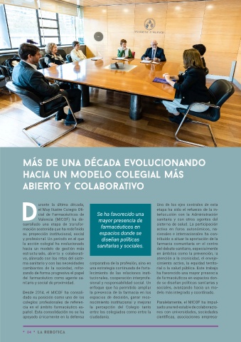 Desde 2014, el MICOF ha consoli- la presencia de la farmacia en los delo más integrado y coordinado. en proyectos relacionados con la