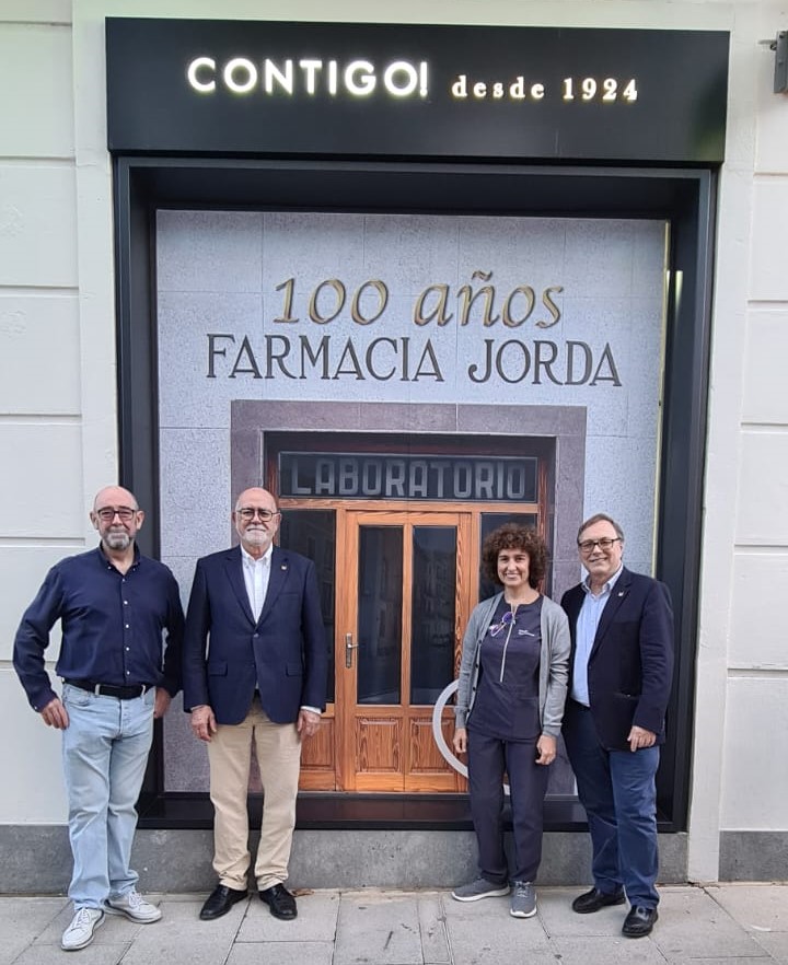 El presidente, Jaime Giner, y el secretario del MICOF, Vicente Colomer, han asistido esta tarde al acto con motivo del centenario de la Farmacia Jordá, ubicada en la localidad de Ontinyent.