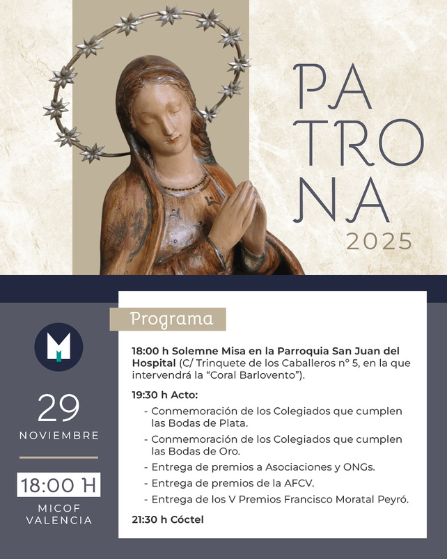 El SÁBADO 29 de noviembre de 2025 celebraremos todos juntos el Día de la Patrona de los Farmacéuticos, la Inmaculada Concepción.