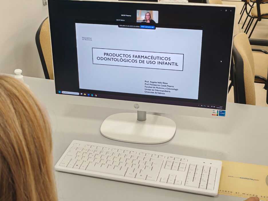 Los asistentes han podido seguir los consejos de Mª Ángeles Velló Ribes, doctora en Odontología, con posgrado en Odontopediatría y Especialista en Programas Preventivos Bucodentales y profesora asociada en el Departamento de Estomatología de la Facultad de Medicina y Odontología de la UV, así como codirectora del Máster de Odontopediatría de la UV.