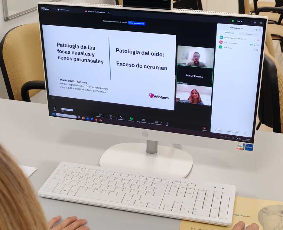 El MICOF, en colaboración con Aflofarm, ha puesto en marcha el Webinar: Paciente con Patología Nasosinusal y Exceso de Cerumen que se ha celebrado esta tarde a través de la plataforma Zoom con el objetivo de formar a los farmacéuticos en ofrecer un buen consejo farmacoterapéutico en rinitis, rinosinusitis, tapones de cerumen, etc.